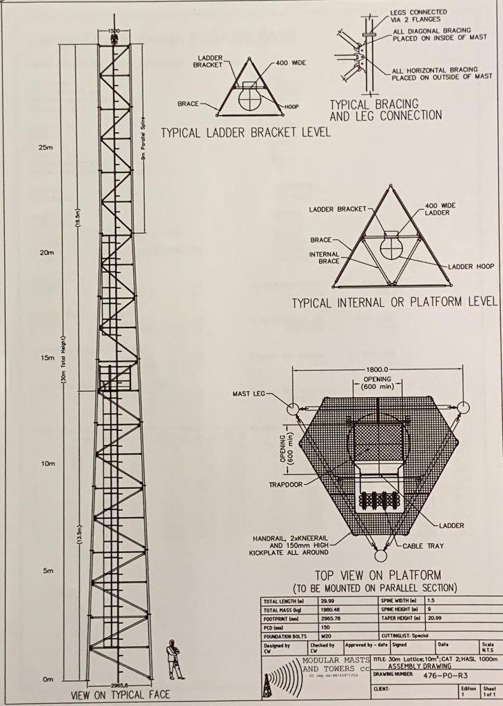 T1 - S 25 36.25 E 27 07.07 ALT. 1546 + 30m for Tower T1